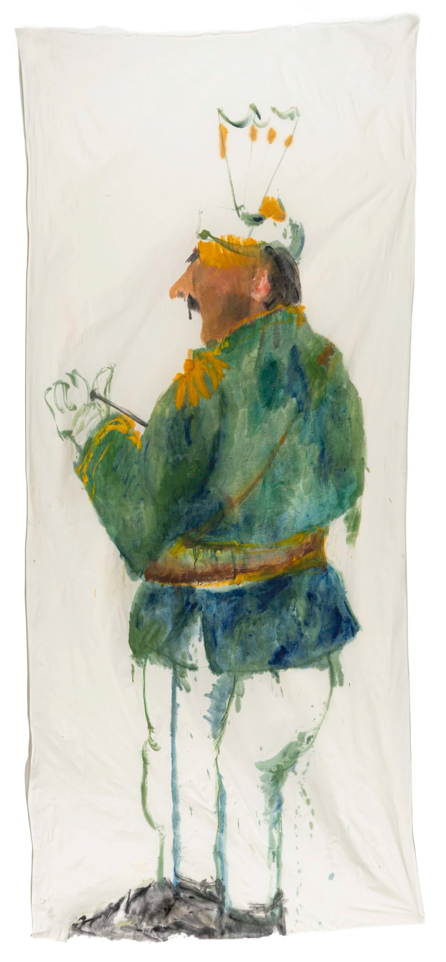 Conductor, 2025, oil and charcoal on muslin, 96 × 42.5 in.