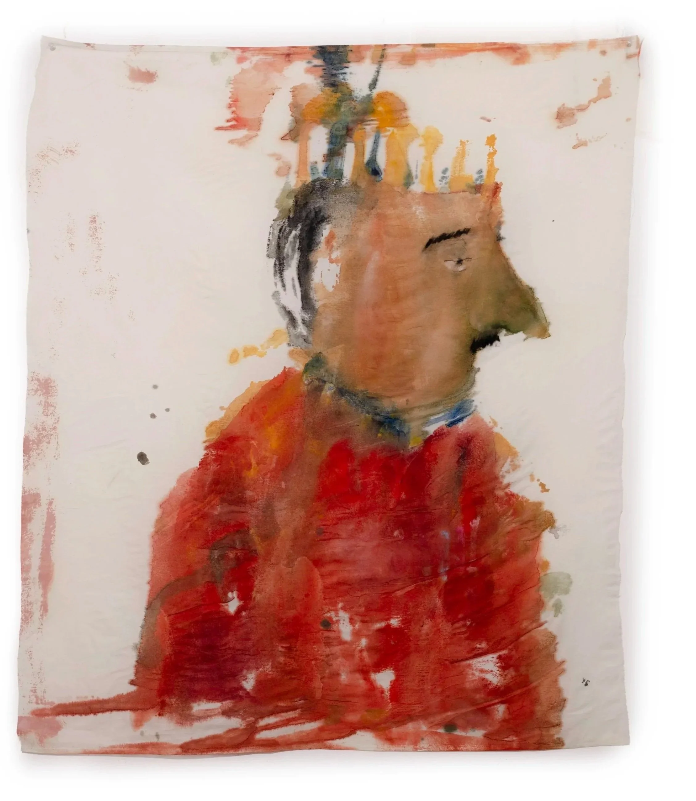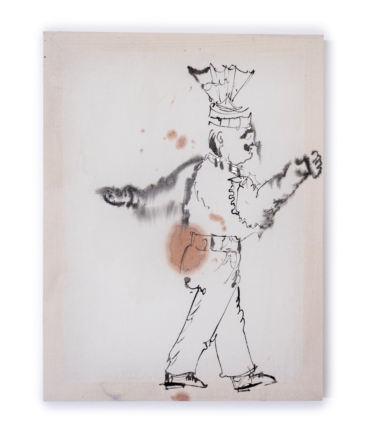Offbeat, 2026, oil and ink on muslin, 18.5 × 14 in.
